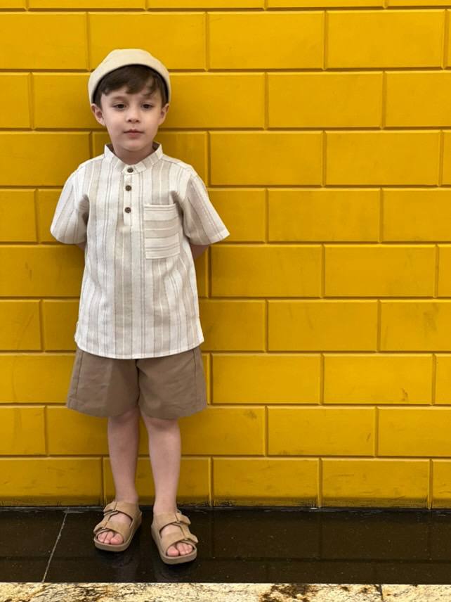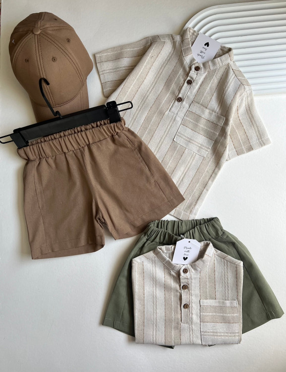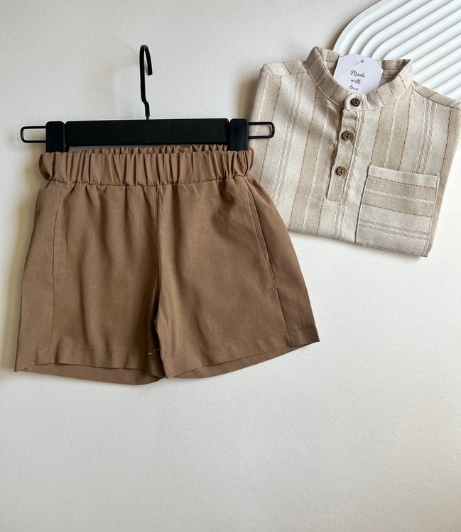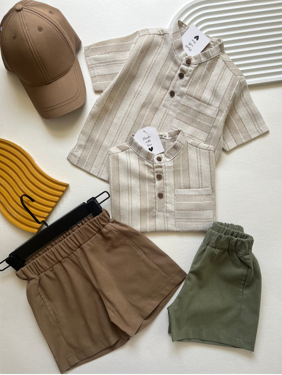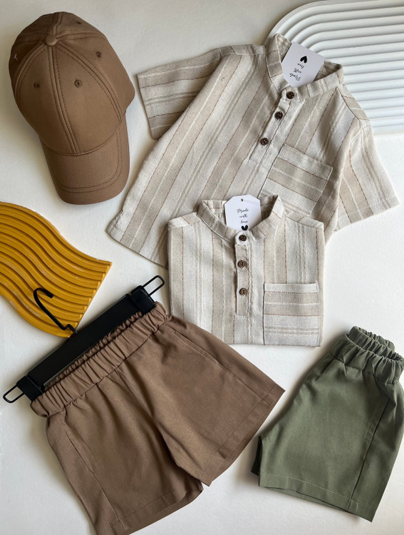 پارچه پیراهن کوک دوزی شده و شلوارک لینن، رنگش هم جوریه که راحت با هر کفشی ست میشه.