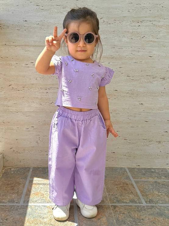 کوچولوی تو، لایقِ زیباترین رنگهاست… ستایی که هم دلنشینه، هم راحته، هم پر از عشق هر دونه مروارید روی لباس، انگار با لبخند بچهها دوخته شده تو دوتا رنگ لطیف: یاسی و صورتی مناسب ۱/ ۶ سال
